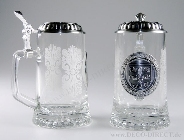 DECO DIRECT® Glas-Bierseidel Notenschlüssel mit Noten 0,5 l, mit Zinndeckel und Sternboden, H: ca. 18,5 cm, Gravur-Empfehlung: auf Deckeloberseite, Bestellnummer: 75221270