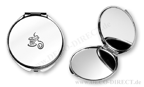 DECO DIRECT® Schminkspiegel Näherin, Ø 6 cm, H: 0,5 cm aus Metall, in Geschenkverpackung, Gravur-Empfehlung: Namensgravur auf Schminkspiegel / Schild auf Geschenkverpackung, Bestellnummer: 83230140