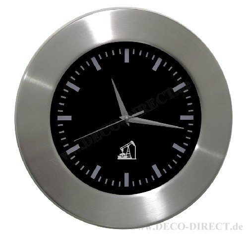 DECO DIRECT® Wanduhr schwarz Ölförderung, Ø 30 cm, in Aluminumgehäuse gebürstet mit Glasabdeckung, inkl. Batterie, Gravurempfehlung: auf Glasabdeckung, Bestellnummer: 13240560