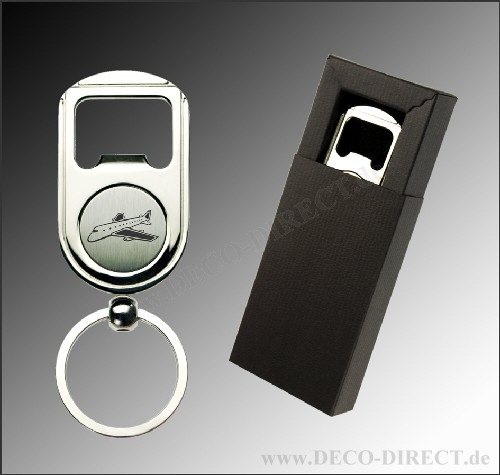 DECO DIRECT® Schlüsselanhänger Flugzeug aus Metall mit Flaschenöffner, L: ca. 9,8 cm, in exklusiver Geschenkverpackung, Gravurempfehlung: auf Schlüsselanhänger / Schild auf Geschenkverpackung, Bestell ...