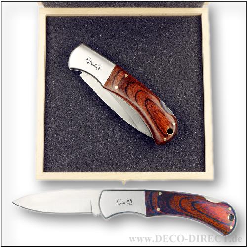 DECO DIRECT® Taschenmesser Handschellen - stabiles Klappmesser mit Edelstahlbacken und eleganten Pakkaholzschalen, Klinge rostfrei, Gesamtlänge ausgeklappt: ca. 21 cm, in Holz-Geschenkverpackung (16,5 ...