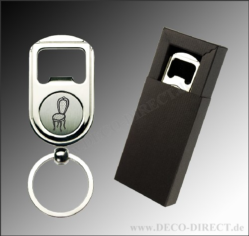 DECO DIRECT® Schlüsselanhänger Polsterer aus Metall mit Flaschenöffner, L: ca. 9,8 cm, in exklusiver Geschenkverpackung, Gravurempfehlung: auf Schlüsselanhänger / Schild auf Geschenkverpackung, Bestellnummer: 10250650