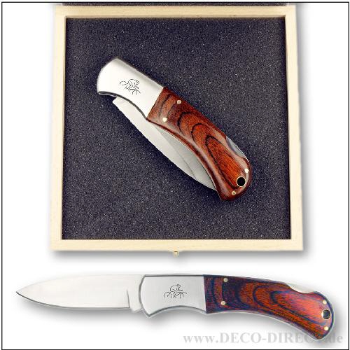 DECO DIRECT® Taschenmesser Radrennfahrer - stabiles Klappmesser mit Edelstahlbacken und eleganten Pakkaholzschalen, Klinge rostfrei, Gesamtlänge ausgeklappt: ca. 21 cm, in Holz-Geschenkverpackung (16, ...