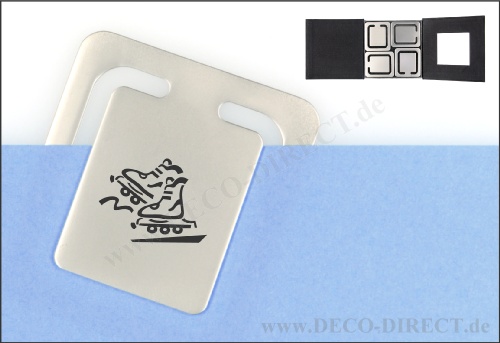 DECO DIRECT® 4er-Set Lesezeichen Rollschuhe aus Metall, je 43 x 38 mm, in exklusiver Karton-Geschenkverpackung, Gravurempfehlung: Initialen auf Lesezeichen / Schild auf Verpackungsaußenseite, Bestellnummer: 58271010