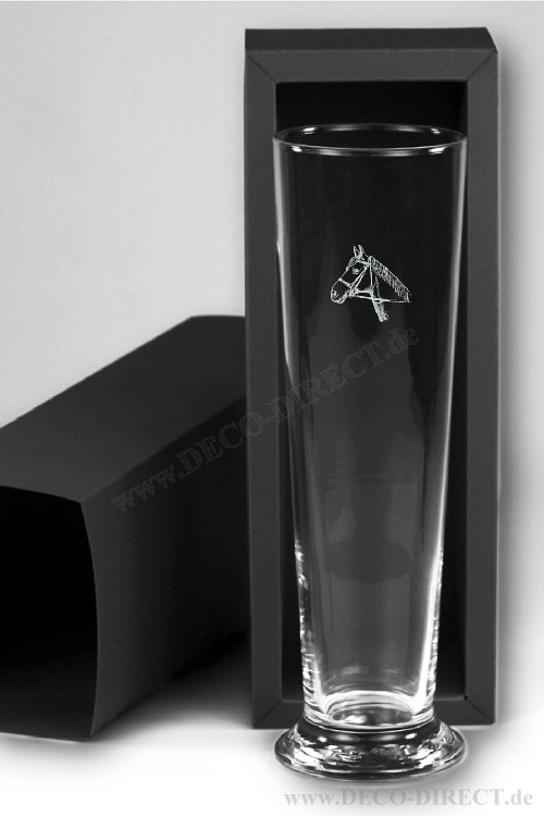 DECO DIRECT® Weizenbierglas Pferdekopf, 0,5 l, H: 24,5 cm, in Geschenkverpackung, Gravurempfehlung: auf Weizenbierglas/Schild auf Verpackungsaußenseite, Bestellnummer: 60270770