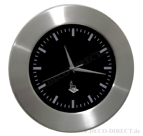 DECO DIRECT® Wanduhr schwarz Schach, Ø 30 cm, in Aluminumgehäuse gebürstet mit Glasabdeckung, inkl. Batterie, Gravurempfehlung: auf Glasabdeckung, Bestellnummer: 13283760