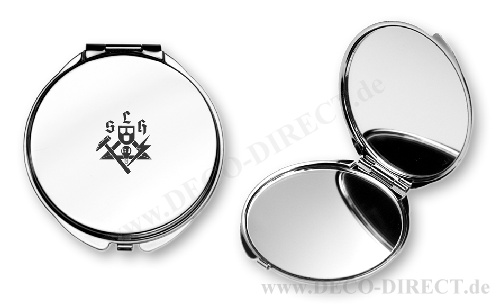 DECO DIRECT® Schminkspiegel Schilder- und Lichtreklameherstellerin, Ø 6 cm, H: 0,5 cm aus Metall, in Geschenkverpackung, Gravur-Empfehlung: Namensgravur auf Schminkspiegel / Schild auf Geschenkverpackung, Bestellnummer: 83283640