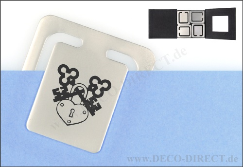 DECO DIRECT® 4er-Set Lesezeichen Schlosser aus Metall, je 43 x 38 mm, in exklusiver Karton-Geschenkverpackung, Gravurempfehlung: Initialen auf Lesezeichen / Schild auf Verpackungsaußenseite, Bestellnummer: 58280810