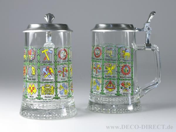 DECO DIRECT® Handwerker-Glaskrug 0,4 l mit Zunftzeichen-Dekor, Sternboden und Zinndeckel, H: ca. 18,0 cm, Gravur-Empfehlung: auf Deckeloberseite, Bestellnummer: 35360100
