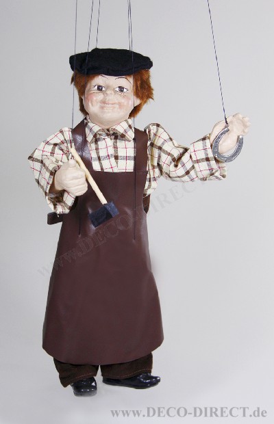 DECO DIRECT® Marionette Schmied, Handarbeit mit vielen liebevollen Details, Charakterkopf aus Keramik-Gießmasse, Kleidung maßgeschneidert, H: ca. 43 cm, Bestellnummer: 70281001