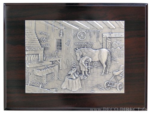 DECO DIRECT® Reliefbild Schmied auf rotbrauner Holzplatte ca. 30 x 23 cm mit integriertem Aufhänger, Bestellnummer: 75281020