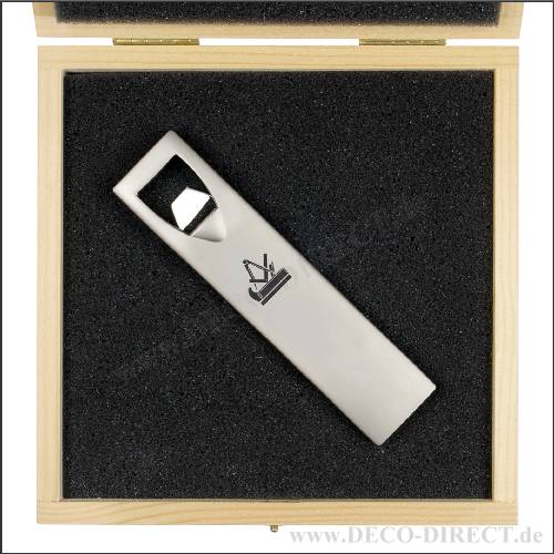DECO DIRECT® Flaschenöffner Schreiner 2 aus Metall, 129 x 30 x 11 mm, in Holz-Geschenkverpackung (16,5 x 16,5 x 3,5 cm), Gravur-Empfehlung: auf Flaschenöffner / auf Verpackungsaußenseite, Bestellnummer: 58281230