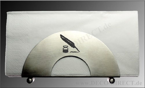 DECO DIRECT® Serviettenhalter Schriftsteller aus Edelstahl, Maße: 15,0 x 8,0 x 3,0 cm, in Metall-Geschenkbox (15,0 x 15,0 x 6,1 cm), Gravurempfehlung: auf Serviettenhalter, Bestellnummer: 76281350