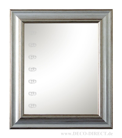 DECO DIRECT® Spiegel Eheringe in silberfarbenem Holzrahmen (7 cm breit), Außenmaße: 56 x 48 cm, mit Aufhänger, Gravurempfehlung: Text/Logo auf Spiegelfläche, Bestellnummer: 50171010