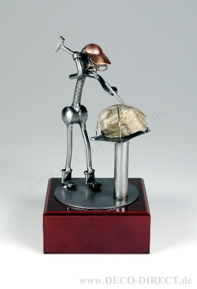 DECO DIRECT® Metall-Skulptur Steinmetz auf Holzsockel im Mahagoni-Design, H: ca. 23,5 cm, Gravur-Empfehlung: Schild auf Holzsockel, Bestellnummer: 85282710