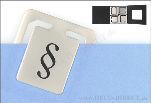 DECO DIRECT® 4er-Set Lesezeichen Paragraph aus Metall, je 43 x 38 mm, in exklusiver Karton-Geschenkverpackung, Gravurempfehlung: Initialen auf Lesezeichen / Schild auf Verpackungsaußenseite, Bestellnummer: 58100310