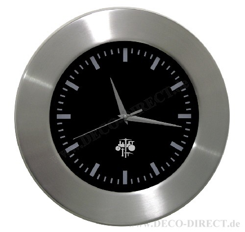 DECO DIRECT® Wanduhr schwarz Straßenbauer, Ø 30 cm, in Aluminumgehäuse gebürstet mit Glasabdeckung, inkl. Batterie, Gravurempfehlung: auf Glasabdeckung, Bestellnummer: 13282960