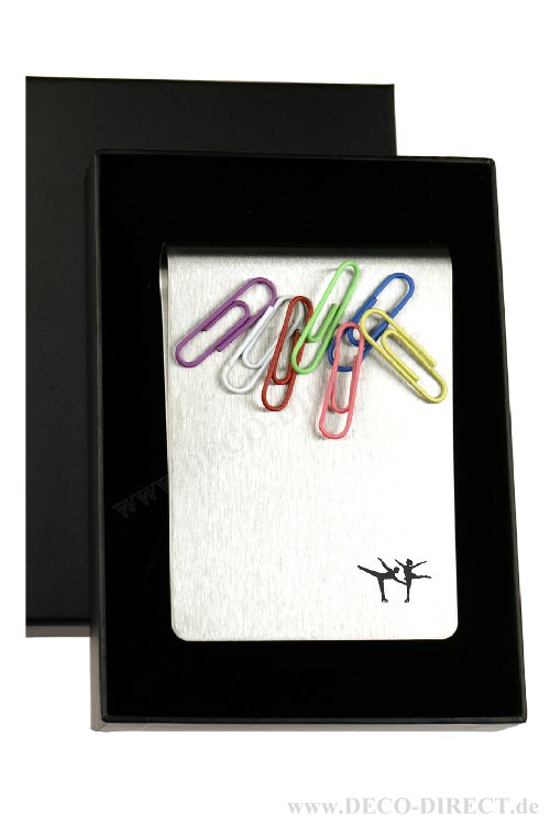 DECO DIRECT® Büroklammernhalter Eiskunstläuferpaar aus Edelstahl mit Magnet, 9,2 x 6,7 cm, in exklusiver Karton-Schiebeverpackung, Gravurempfehlung: auf Büroklammernhalter / Schild auf Verpackung, Bestellnummer: 62283420