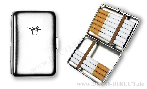 DECO DIRECT® Zigarettenetui Eiskunstläuferpaar, aus Metall, ca. 9,5 x 6,5 x 1,5 cm, Lieferung unbefüllt, in Holz-Geschenkverpackung (16,5 x 16,5 x 3,5 cm), Gravur-Empfehlung: auf Zigarettenetui / auf ...
