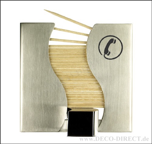 DECO DIRECT® Zahnstocherspender Telekommunikation aus Edelstahl, Maße: 8,0 x 8,0 x 3,5 cm, in exklusiver Karton-Geschenkverpackung schwarz/silber (8,5 x 8,5 x 5,5 cm), Gravurempfehlung: auf Zahnstoche ...