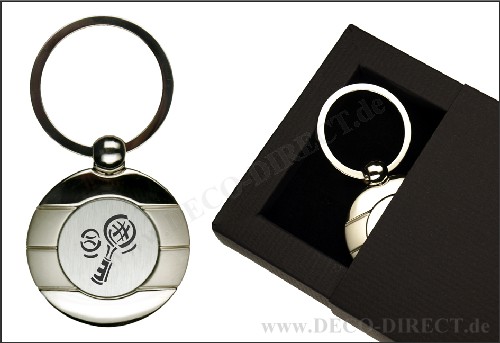 DECO DIRECT® Schlüsselanhänger rund Tennis aus Metall, L: ca. 7,5 cm, in exklusiver Geschenkverpackung, Gravurempfehlung: Schild auf Geschenkverpackung, Bestellnummer: 10290260