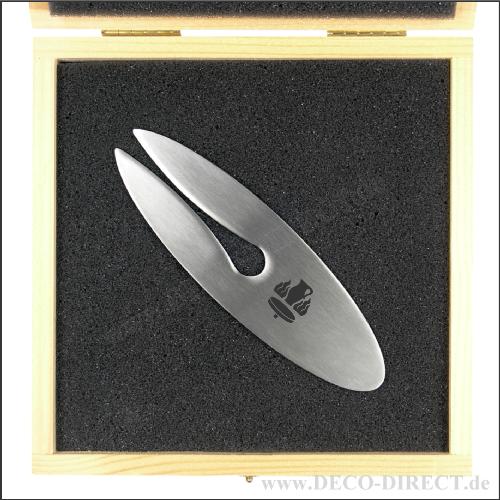 DECO DIRECT® Brieföffner Töpfer 1 aus Edelstahl, 135 x 39 x 1 mm, in Holz-Geschenkverpackung (16,5 x 16,5 x 3,5 cm), Gravur-Empfehlung: auf Brieföffner / auf Verpackungsaußenseite, Bestellnummer: 58290520