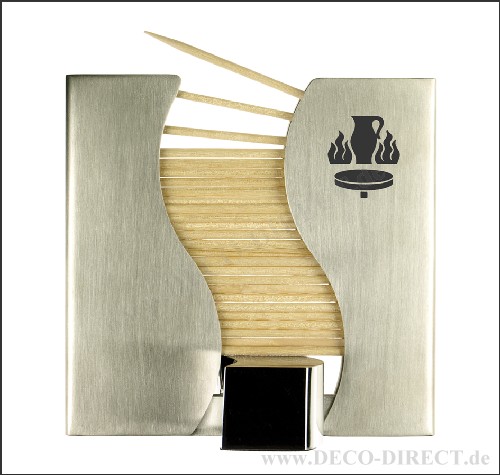 DECO DIRECT® Zahnstocherspender Töpfer aus Edelstahl, Maße: 8,0 x 8,0 x 3,5 cm, in exklusiver Karton-Geschenkverpackung schwarz/silber (8,5 x 8,5 x 5,5 cm), Gravurempfehlung: auf Zahnstocherspender / auf Verpackungsaußenseite, Bestellnummer: 76290540