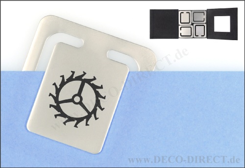 DECO DIRECT® 4er-Set Lesezeichen Uhrmacher 2 aus Metall, je 43 x 38 mm, in exklusiver Karton-Geschenkverpackung, Gravurempfehlung: Initialen auf Lesezeichen / Schild auf Verpackungsaußenseite, Bestellnummer: 58300110