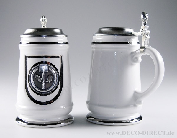 DECO DIRECT® Keramik-Bierseidel weiß Handwerk 0,5 l, mit Platindekor und Zinndeckel, H: ca. 19,3 cm, Gravur-Empfehlung: auf Deckeloberseite, Bestellnummer: 75360290
