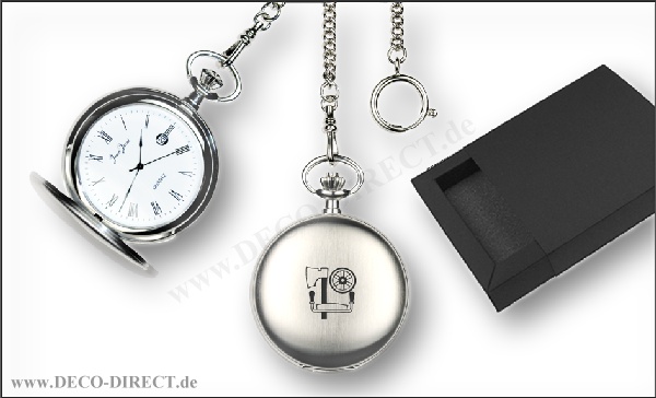 DECO DIRECT® Taschenuhr Wagner, verchromt, Ø ca. 48 mm, Quarzwerk, Datumsanzeige, römisches Zifferblatt, Sprungdeckel und Kette, in Karton-Geschenkverpackung, Gravurempfehlung: Initialen auf Taschenuhr / auf Verpackungsaußenseite, Bestellnummer: 82320120