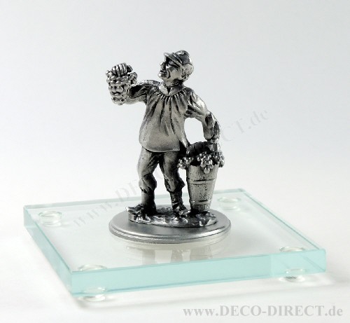 DECO DIRECT® Zinnminiatur Weinbauer auf Glassockel 10 x 10 cm, Bestellnummer: 40320601
