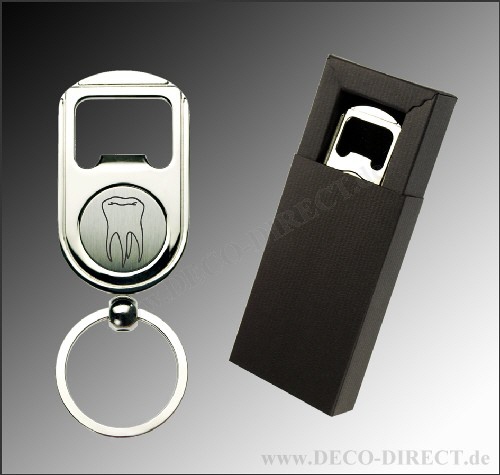 DECO DIRECT® Schlüsselanhänger Zahn aus Metall mit Flaschenöffner, L: ca. 9,8 cm, in exklusiver Geschenkverpackung, Gravurempfehlung: auf Schlüsselanhänger / Schild auf Geschenkverpackung, Bestellnumm ...