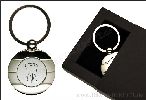 DECO DIRECT® Schlüsselanhänger rund Zahn aus Metall, L: ca. 7,5 cm, in exklusiver Geschenkverpackung, Gravurempfehlung: Schild auf Geschenkverpackung, Bestellnummer: 10350160