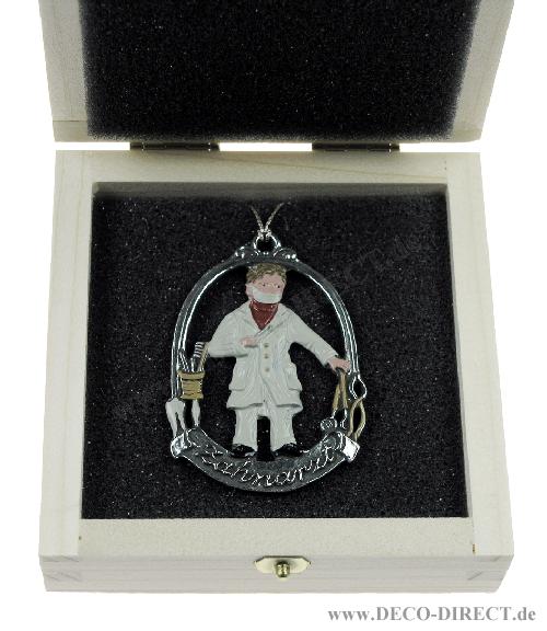 DECO DIRECT® Zinnfigur Zahnarzt, H: 6,0 cm, inkl. Aufhänger, in Holz-Geschenkverpackung (9,5 x 9,5 x 3,5 cm), Gravur-Empfehlung: auf Verpackungsaußenseite, Bestellnummer: 13-20-069V