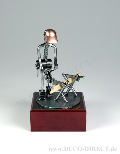 DECO DIRECT® Metall-Skulptur Zimmermann auf Holzsockel im Mahagoni-Design, H: ca. 22,0 cm, Gravur-Empfehlung: Schild auf Holzsockel, Bestellnummer: 85350310
