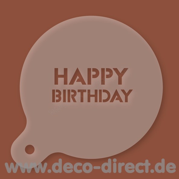 Cappuccino-Schablone Happy Birthday Kunststoff