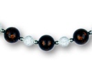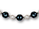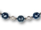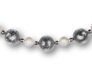 Kombination verschiedenfarbiger Polaris-Kunstperlen mit Metall-Schmuckelementen. Das Schmuckseil ist aus 1,4 mm starkem Edelstahl, farblos beschichtet mit Steckverschluss. Lieferbare Längen: 40, 42, 45 und 50 cm. Die Schmuckelemente sind gegen Verrutschen fixiert.