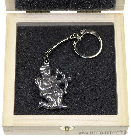 DECO DIRECT® Schlüsselanhänger Schütze antik, H: 4,5 cm, in Holz-Geschenkverpackung (9,5 x 9,5 x 3,5 cm), Gravur-Empfehlung: auf Verpackungsaußenseite, Bestellnummer: 15-01-025V