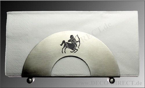 DECO DIRECT® Serviettenhalter Schütze aus Edelstahl, Maße: 15,0 x 8,0 x 3,0 cm, in Metall-Geschenkbox (15,0 x 15,0 x 6,1 cm), Gravurempfehlung: auf Serviettenhalter, Bestellnummer: 76901250