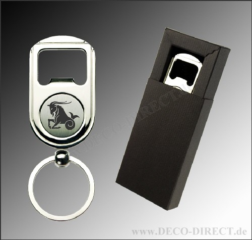 DECO DIRECT® Schlüsselanhänger Steinbock aus Metall mit Flaschenöffner, L: ca. 9,8 cm, in exklusiver Geschenkverpackung, Gravurempfehlung: auf Schlüsselanhänger / Schild auf Geschenkverpackung, Bestel ...