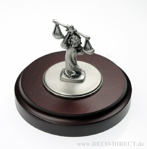 DECO DIRECT® Zinnminiatur Waage auf rundem Sockel Rosenholz-Design Ø ca. 10 cm, Gravurempfehlung: Rundgravur auf Sockel, Bestellnummer: 40901011