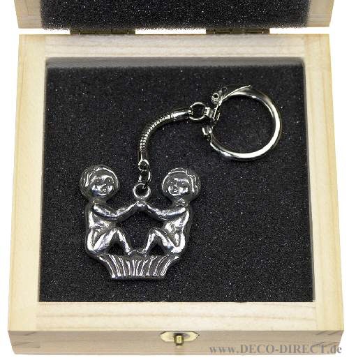 DECO DIRECT® Schlüsselanhänger Zwilling antik, H: 4,5 cm, in Holz-Geschenkverpackung (9,5 x 9,5 x 3,5 cm), Gravur-Empfehlung: auf Verpackungsaußenseite, Bestellnummer: 15-01-019V