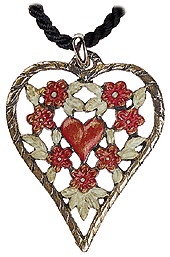 Halsschmuck Herz mit vier Blumen rot