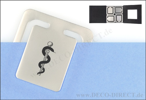 DECO DIRECT® 4er-Set Lesezeichen "Äskulapstab" aus Metall, je 43 x 38 mm, in exklusiver Karton-Geschenkverpackung, Gravurempfehlung: Initialen auf Lesezeichen / Schild auf Verpackungsaußenseite