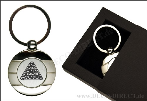 DECO DIRECT® Schlüsselanhänger rund Billard aus Metall, L: ca. 7,5 cm, in exklusiver Geschenkverpackung, Gravurempfehlung: Schild auf Geschenkverpackung, Bestellnummer: 10111660