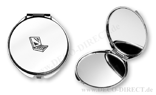 DECO DIRECT® Schminkspiegel Computer, Ø 6 cm, H: 0,5 cm aus Metall, in Geschenkverpackung, Gravur-Empfehlung: Namensgravur auf Schminkspiegel / Schild auf Geschenkverpackung, Bestellnummer: 83140140