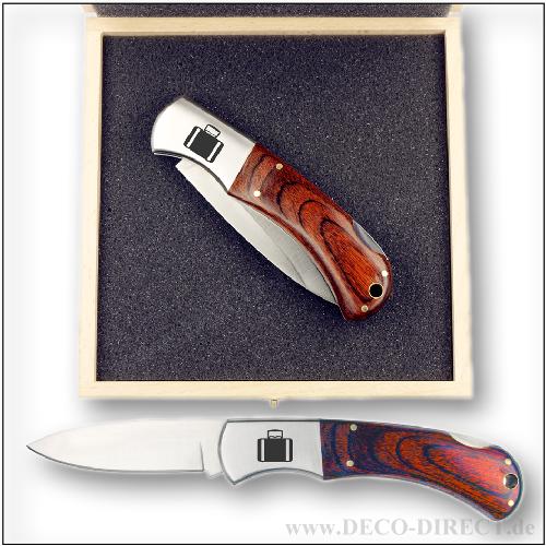DECO DIRECT® Taschenmesser Koffer - stabiles Klappmesser mit Edelstahlbacken und eleganten Pakkaholzschalen, Klinge rostfrei, Gesamtlänge ausgeklappt: ca. 21 cm, in Holz-Geschenkverpackung (16,5 x 16,5 x 3,5 cm), Gravur-Empfehlung: Initialen auf Messer / auf Verpackung, Bestellnummer: 79202530