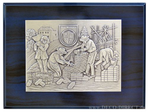 DECO DIRECT® Reliefbild Maurer auf blauer Holzplatte ca. 30 x 23 cm mit integriertem Aufhänger, Bestellnummer: 75220760