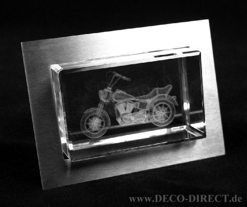 DECO DIRECT® 3D-Glasobjekt Motorrad, 50 x 50 x 80 mm, in Edelstahlrahmen (80 x 110 mm), Gravur-Empfehlung: auf Edelstahlrahmen , Bestellnummer: 92221401