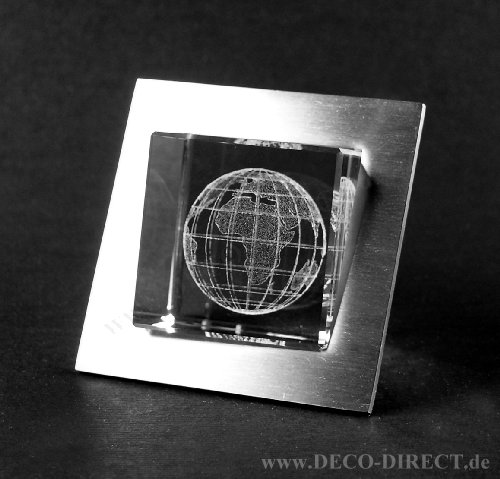 DECO DIRECT® 3D-Glasobjekt Weltkugel, 40 x 40 x 40 mm, in Edelstahlrahmen (64 x 64 mm), Gravur-Empfehlung: auf Edelstahlrahmen, Bestellnummer: 91320801